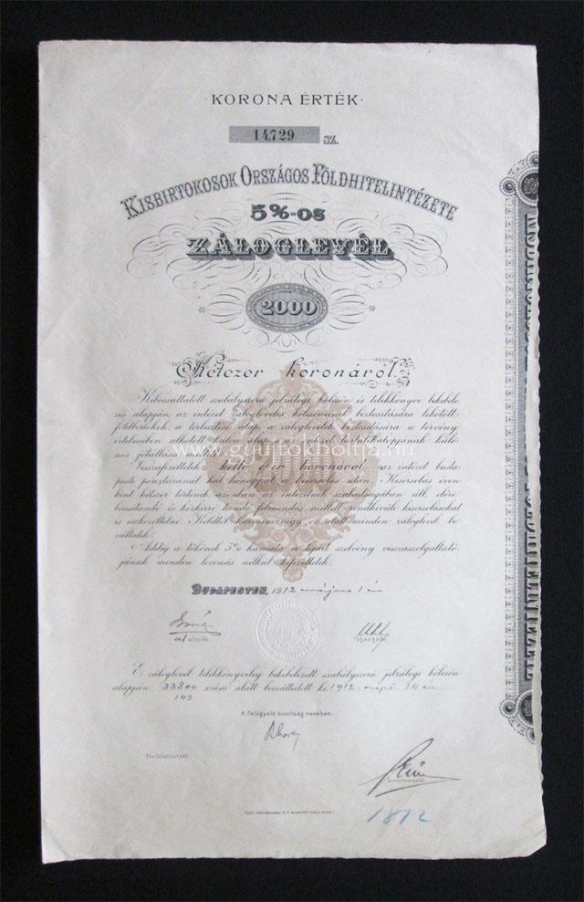 ÉrtesítésekÉrtesítés a frissítésekről Kisbirtokosok Országos Földhitelintézete záloglevél 2000 k 1912
