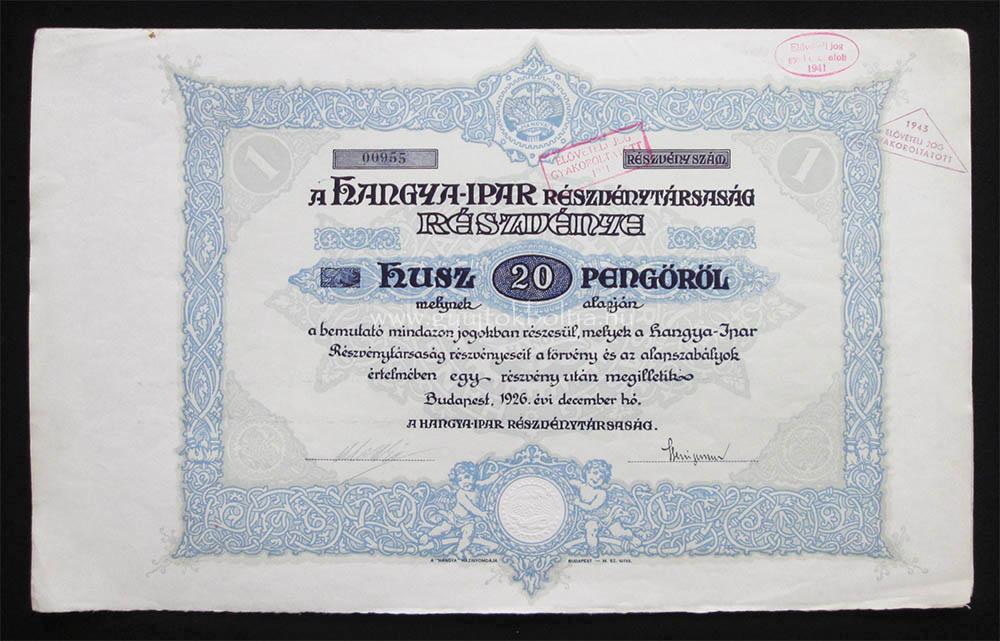 ÉrtesítésekÉrtesítés a frissítésekről Hangya-Ipar Részvénytársaság részvény 20 pengő 1926