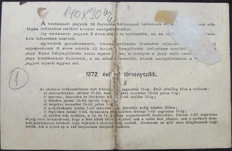 ÉrtesítésekÉrtesítés a frissítésekről Vadászati jegy 12 forint értékjeggyel 1875 Gyula