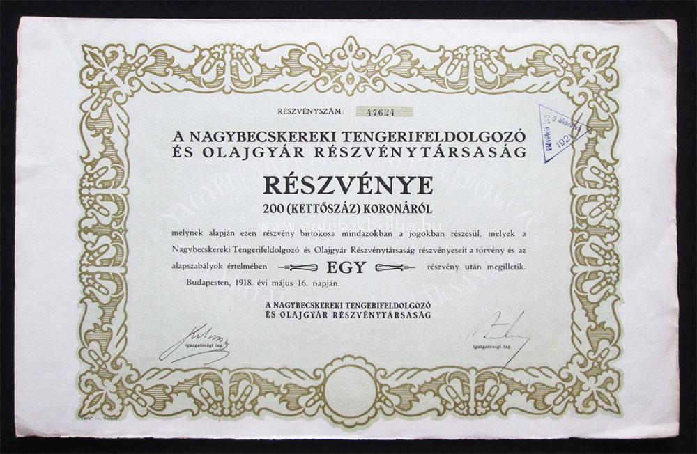NotificationsNotify me of updates to Nagybecskereki Tengerifeldolgozó részvény 200 korona 1918 (SRB)